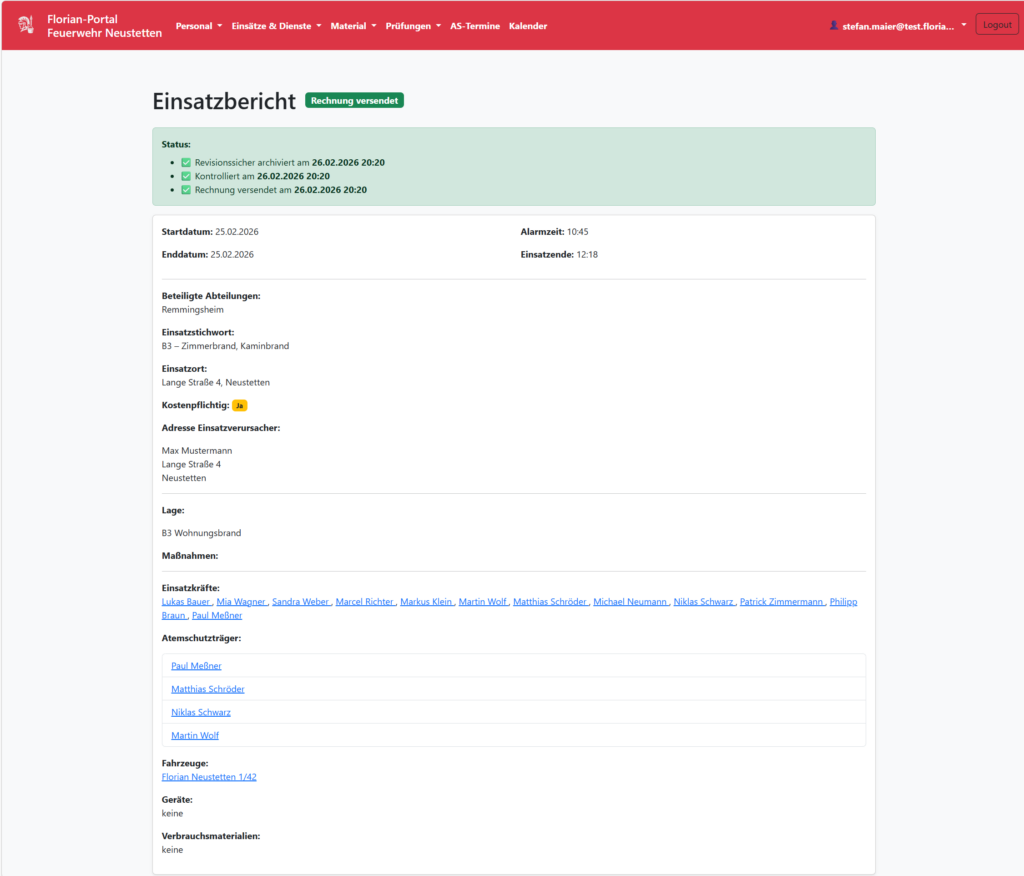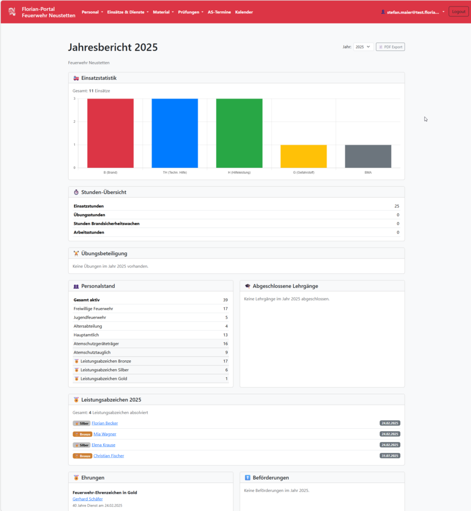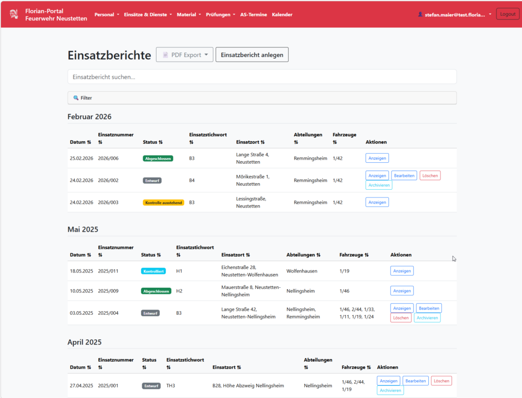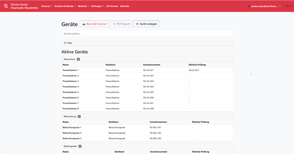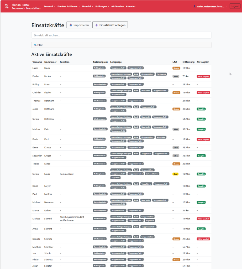 Die Anwendung unterstützt Feuerwehren und Landkreise bei der digitalen Verwaltung von Personal, Geräten, Einsätzen und Ausbildungsprozessen.